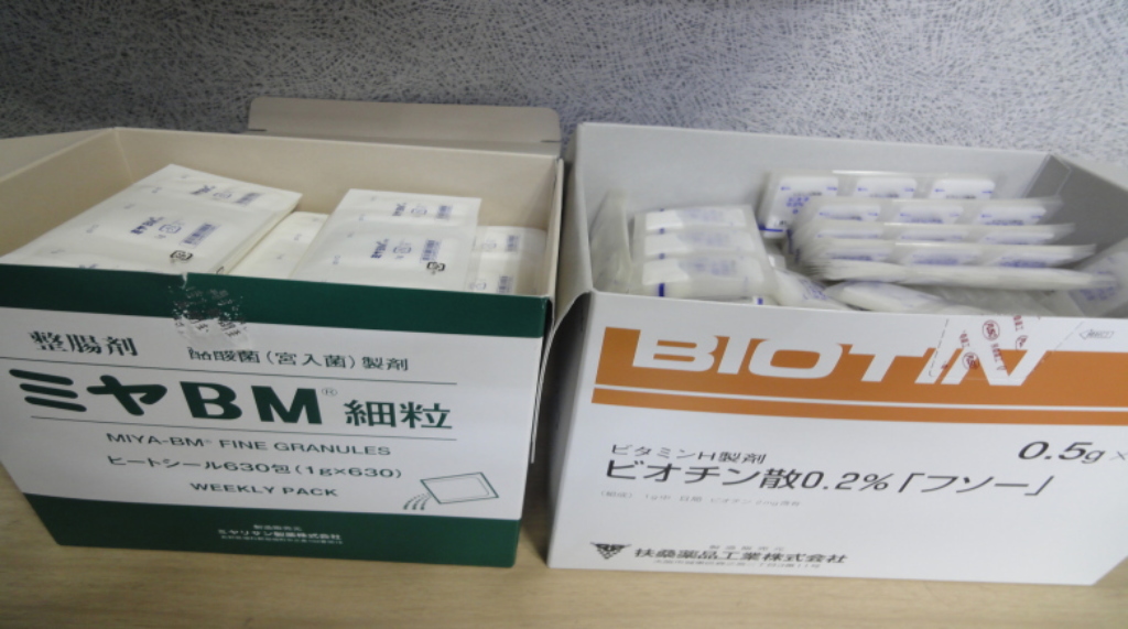 ミヤBM細粒一包か錠剤2錠をビオチン散と同時に服用