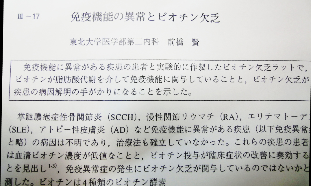 ではアトピー治療、掌蹠膿疱症などにビオチン療法を使用するのが常識になってきてい